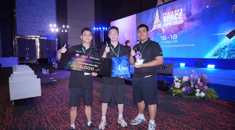 โครงการ วมว.มธ.-สกร. ขอแสดงความยินดีกับ นายปรัตถกร บุญเลิศ นายศินาย พรธิษฐาน และ นายพีรวิชญ์ ทรงพลวารินทร์ นักเรียนชั้น ม.6 (รุ่น 9) ที่ได้รับรางวัลรองชนะเลิศ ในการแข่งขัน THE CubeSat Quest 2025 “Exploring the Beyond” ภายใต้งาน Thailand Space Expo2025 วันที่ 17 ตุลาคม 2568 ณ ห้อง MR 4-5 ICONSIAM กรุงเทพมหานคร