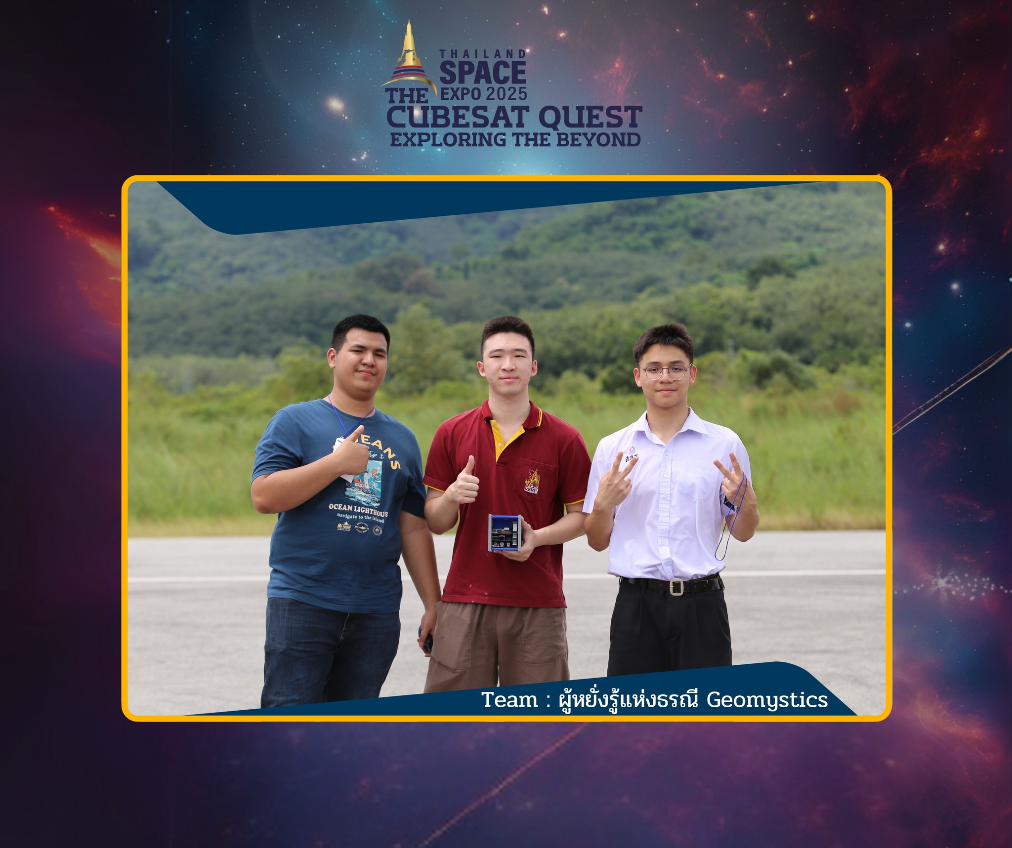 โครงการ วมว.มธ.-สกร. ขอแสดงความยินดีกับนักเรียนชั้น ม.6 (รุ่น 9) นายปรัตถกร บุญเลิศ นายศินาย พรธิษฐาน และนายพีรวิชญ์ ทรงพลวารินทร์ ที่ผ่านเข้าสู่รอบชิงชนะเลิศ (7 ทีมสุดท้าย) ในการแข่งขัน THE CubeSat Quest 2025 “Exploring the Beyond” ภายใต้งาน Thailand Space Expo2025 ซึ่งจะจัดการแข่งขันรอบชิงชนะเลิศ ในวันศุกร์ที่ 17 ตุลาคม 2568 ณ ห้อง MR 4-5 ICONSIAM กรุงเทพมหานคร เพื่อชิงถ้วยพระราชทานสมเด็จพระกนิษฐาธิราชเจ้า กรมสมเด็จพระเทพรัตนราชสุดาฯ สยามบรมราชกุมารี