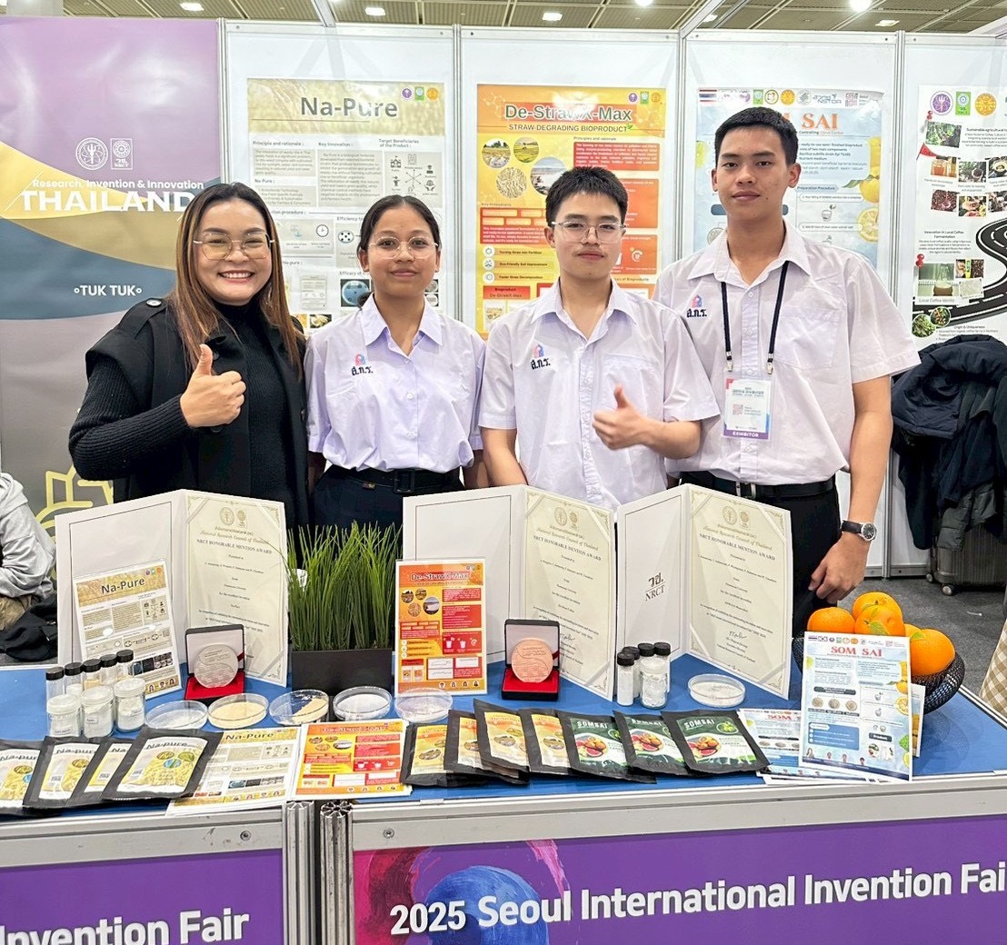 โครงการ วมว.มธ.-สกร. ขอแสดงความยินดีกับนักเรียนชั้นมัธยมศึกษาปีที่ 5 (รุ่น 10) และอาจารย์ที่ปรึกษาโครงงาน ที่ได้รับรางวัลจากการประกวดผลงานสิ่งประดิษฐ์และนวัตกรรม ในเวทีระดับนานาชาติ Seoul International Invention Fair 2025 (SIIF 2025) ระหว่างวันที่ 3 – 6 ธันวาคม 2568 ณ COEX Convention & Exhibition Center กรุงโซล สาธารณรัฐเกาหลี